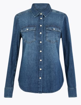 Pure Cotton Button Detail Long Sleeve Shirt Per Una M S
