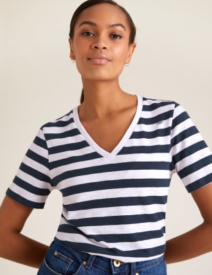 Pure Cotton Striped Straight Fit T Shirt M S Collection M S